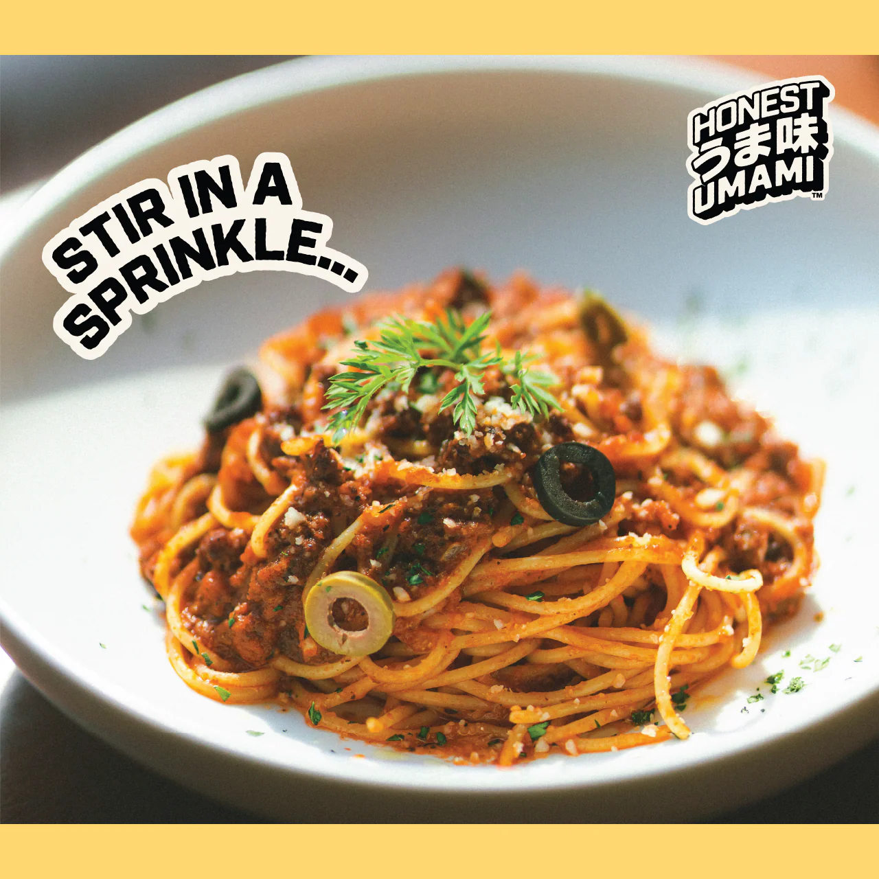 - Add a pinch of Honest Umami 3–2–1 to any tomato-based pasta sauce to bring out the natural deliciousness of the tomatoes and level up the taste