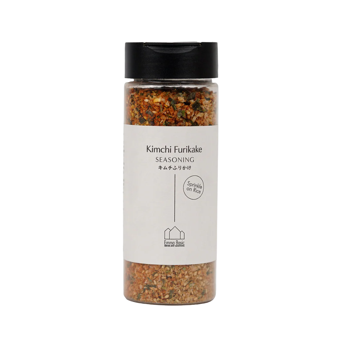 - The word "furikake" is a fun combination of two Japanese verbs: "furi," meaning "shake," and "kake," meaning "sprinkle." It's all about shaking and sprinkling, super convenient. It delivers the essence of kimchi without the need for refrigeration or preparation - an easy addition of umami to meals with minimal effort!